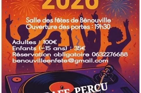 L’association Bénouville en Fête organise une soirée le mercredi 31 décembre à 19h30 dans la salle polyvalente à l’occasion du Nouvel An.